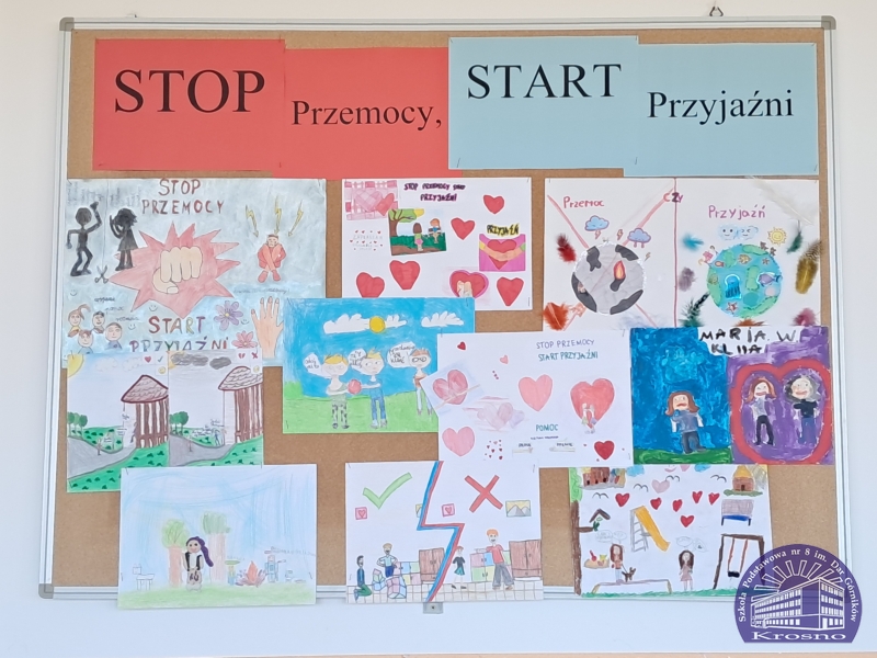 W ramach Tygodnia Przeciwdziałania Przemocy Rówieśniczej uczniowie klas I– III wzięli udział w konkursie plastycznym „Stop przemocy – Start przyjaźni”. Celem konkursu było pokazanie, jak ważne jest wspieranie się nawzajem i budowanie pozytywnych relacji wśród rówieśników. W konkursie udział wzięło wielu uczniów, a wszystkie prace zachwycały pomysłowością, kolorystyką i głębokim przesłaniem. Komisja konkursowa miała trudne zadanie, by spośród tak wielu interesujących prac wyłonić te wyróżnione. Autorzy wyróżnionych prac: Hanna Biernacka, Alicja Kasprzyk, Anna Machnik, Antonina Orzechowska, Maria Więcek, Natalia Wróbel, Lilianna Ukleja, Maja Sieniawska, Sebastian Gomółka, Jakubowicz Zofia, Urbaniak Emilia, Pyra Aleksandra.